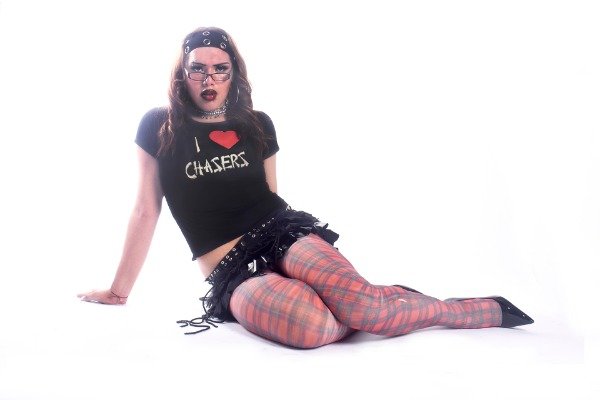 estampa I ♡ CHASERS blanca, con el corazón en rosa o en rojo, hecha en serigrafía artesanal.